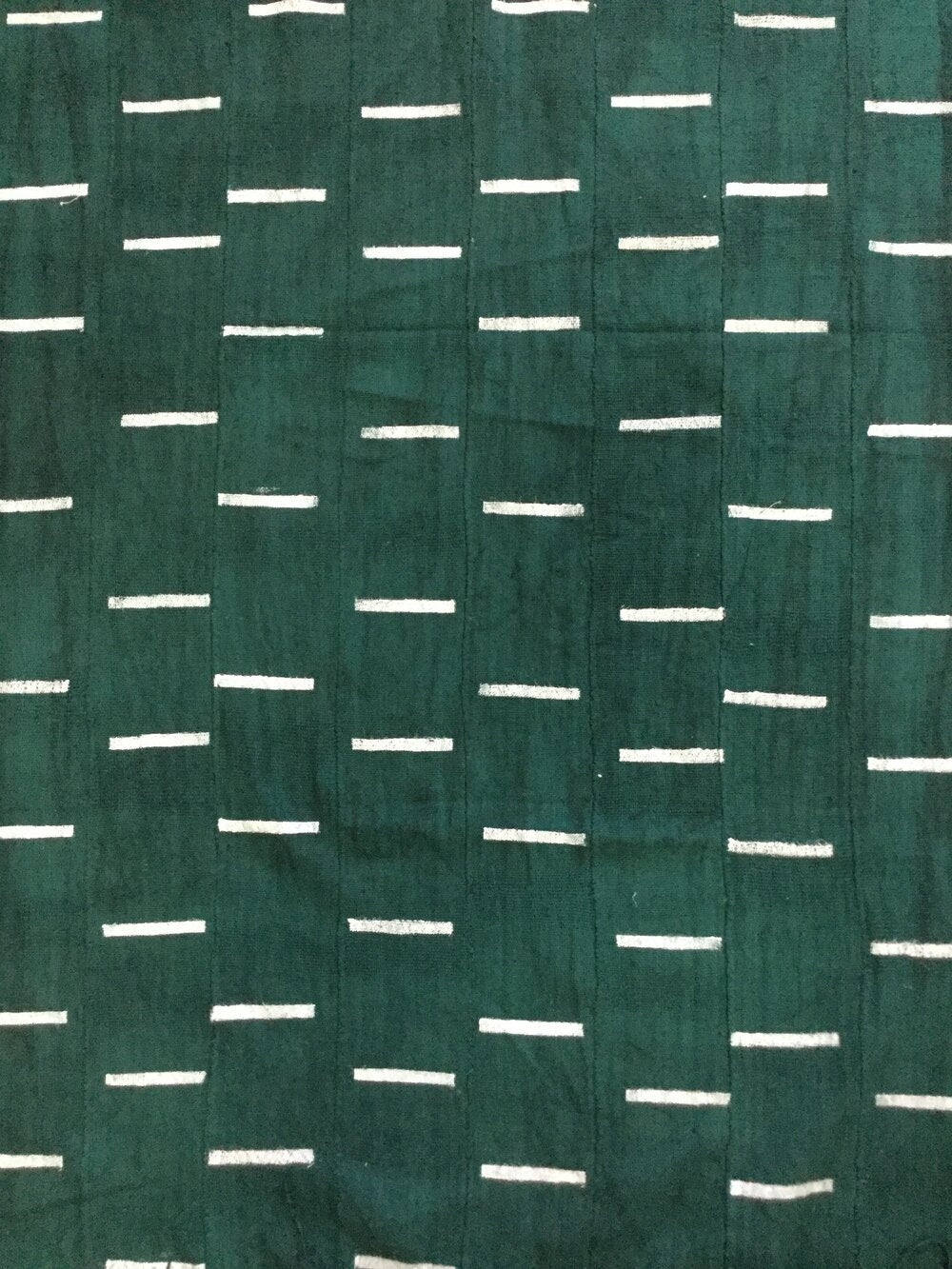 White Dashes on Dense Forest Green Mudcloth