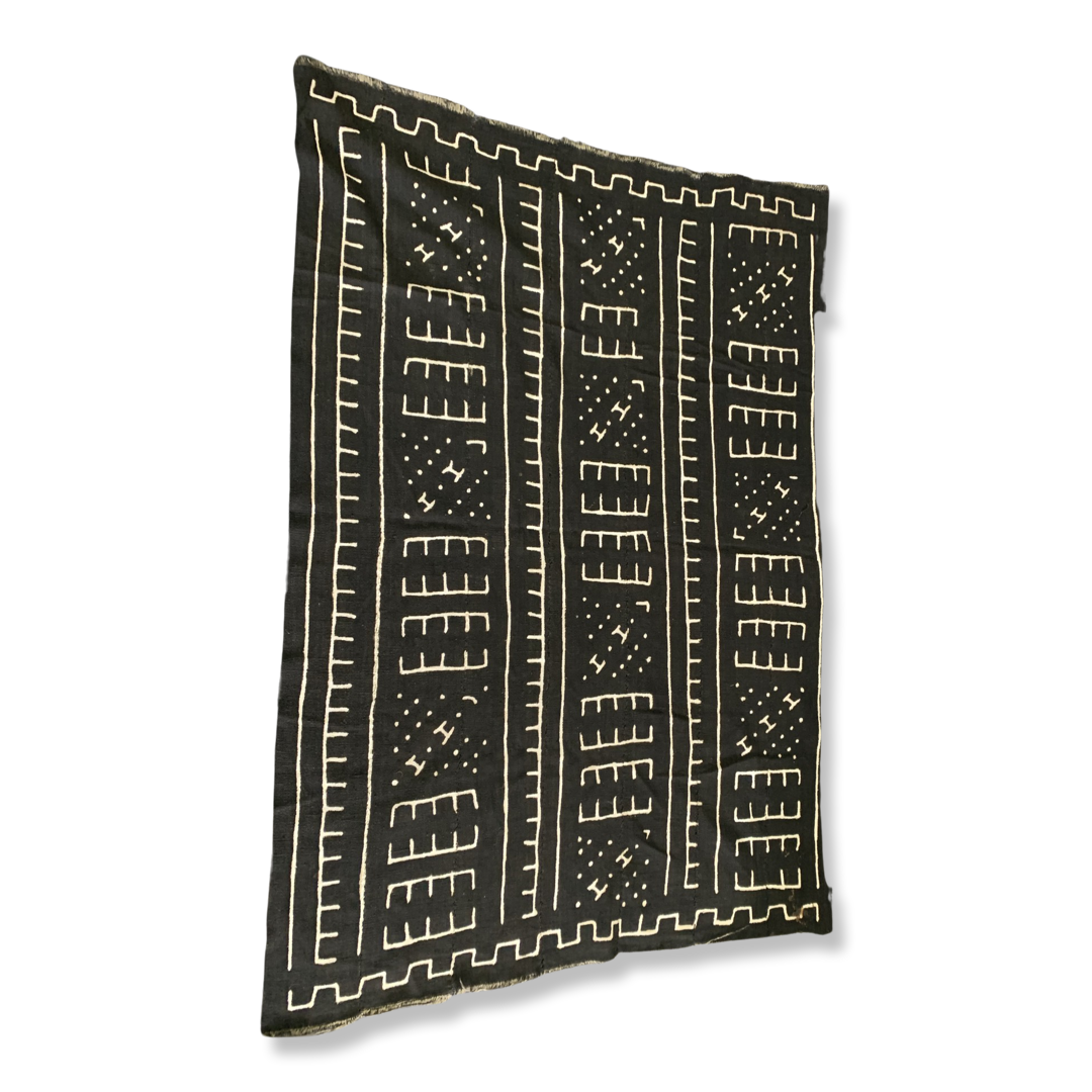 Handspun, handwoven, and hand-dyed with 100% organic cotton. Each Traditional Black Bogolan tells its own wonderfully magical story. These mud-cloths are handmade by our family in Mali and there are slight variations with the coloring and designs of each piece.