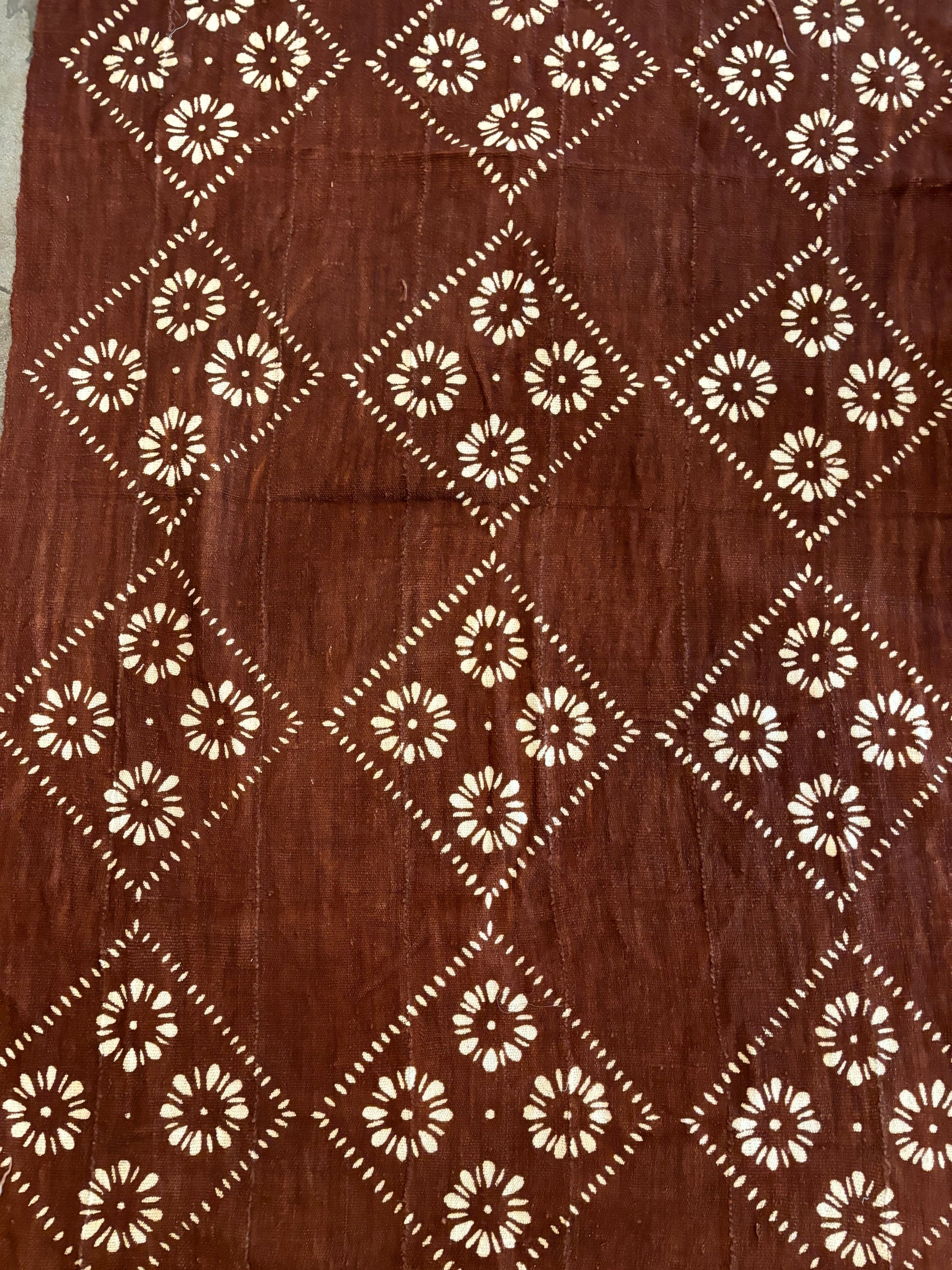 Flowers and Squares on Rust Mudcloth