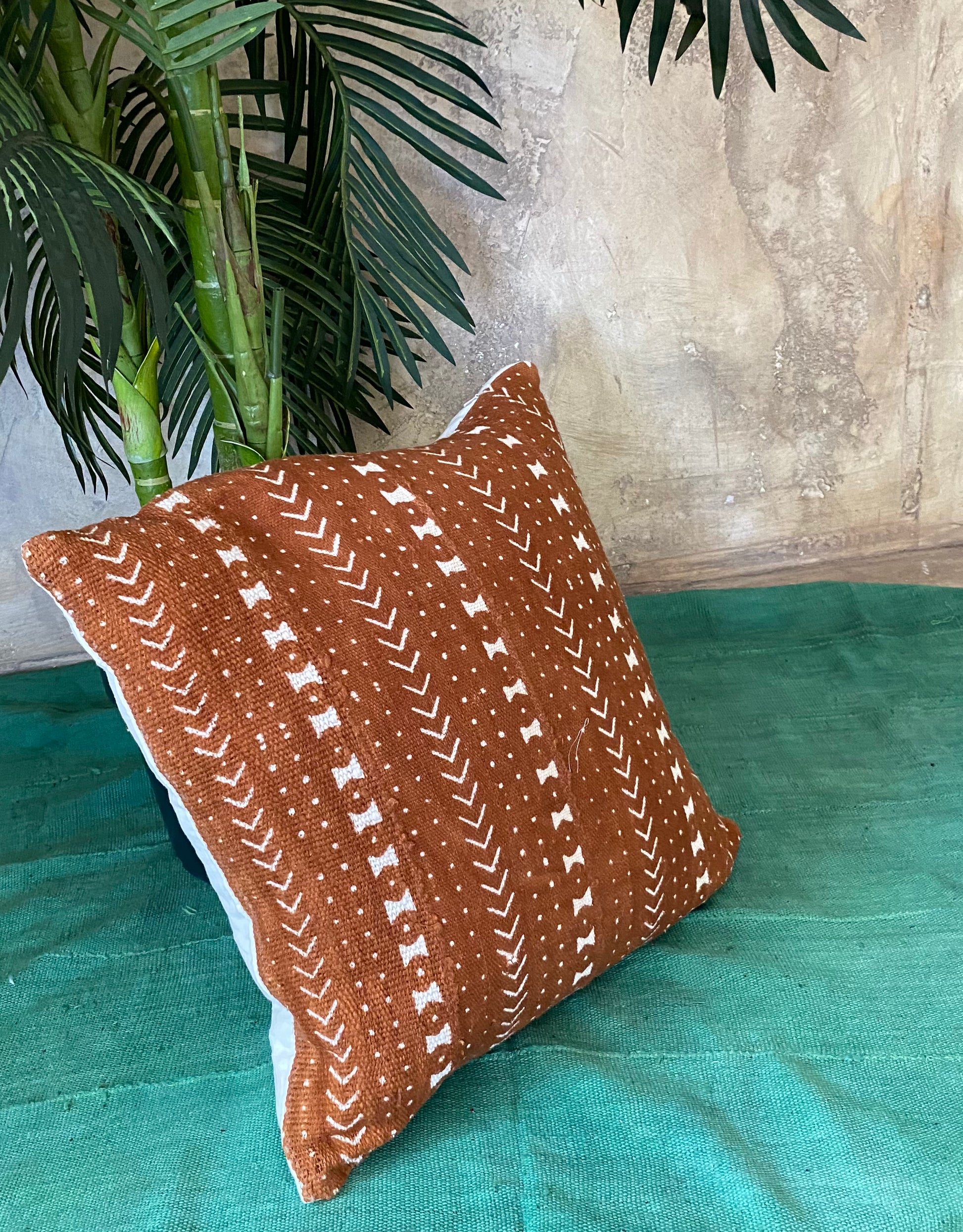 Made from Hand spun, handwoven, and hand-dyed with 100% organic cotton. These mud cloth pillows are handmade by our family in Mali.