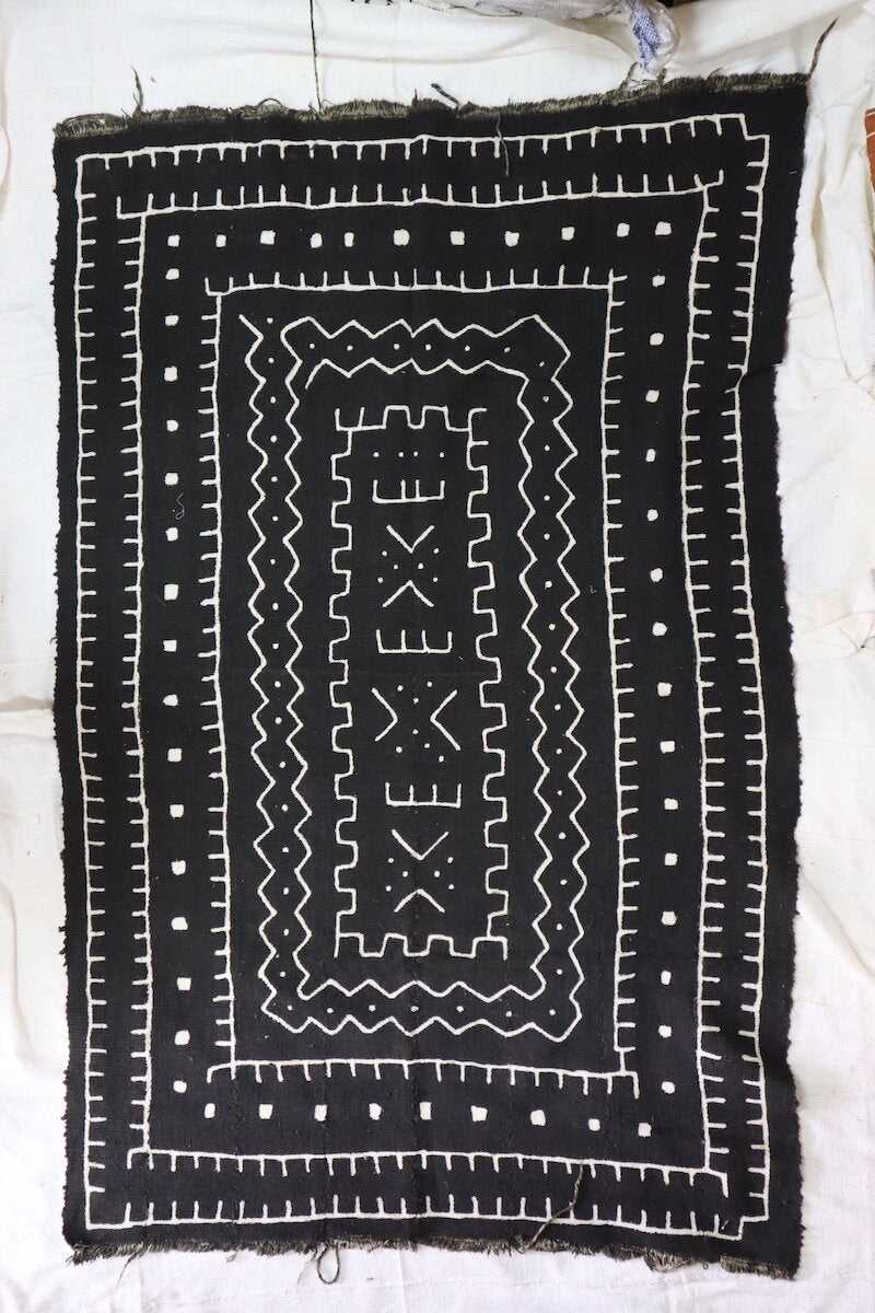 Handspun, handwoven, and hand-dyed with 100% organic cotton. Each Traditional Black Bogolan tells its own wonderfully magical story. These mud-cloths are handmade by our family in Mali and there are slight variations with the coloring and designs of each piece.