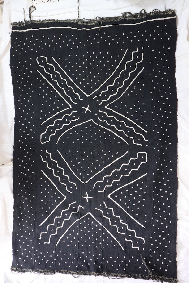 Handspun, handwoven, and hand-dyed with 100% organic cotton. Each Traditional Black Bogolan tells its own wonderfully magical story. These mud-cloths are handmade by our family in Mali and there are slight variations with the coloring and designs of each piece.