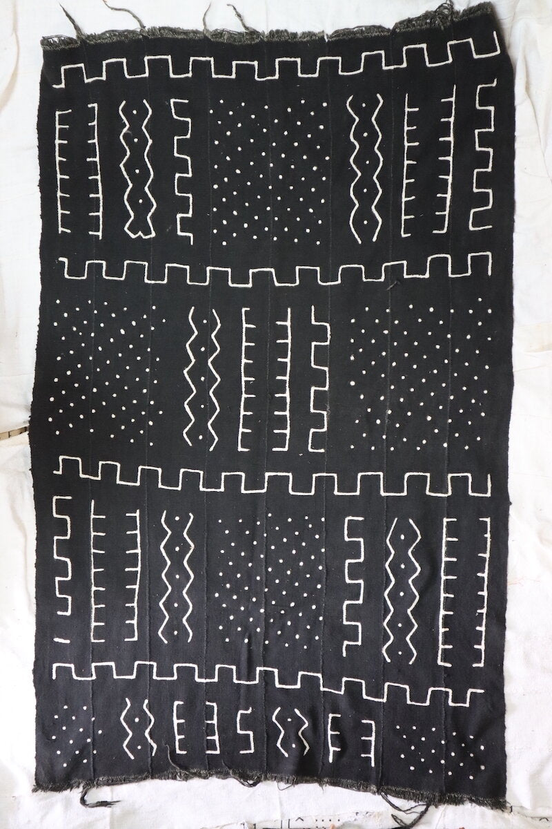 Handspun, handwoven, and hand-dyed with 100% organic cotton. Each Traditional Black Bogolan tells its own wonderfully magical story. These mud-cloths are handmade by our family in Mali and there are slight variations with the coloring and designs of each piece.