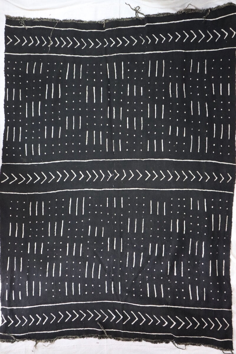 Handspun, handwoven, and hand-dyed with 100% organic cotton. Each Traditional Black Bogolan tells its own wonderfully magical story. These mud-cloths are handmade by our family in Mali and there are slight variations with the coloring and designs of each piece.