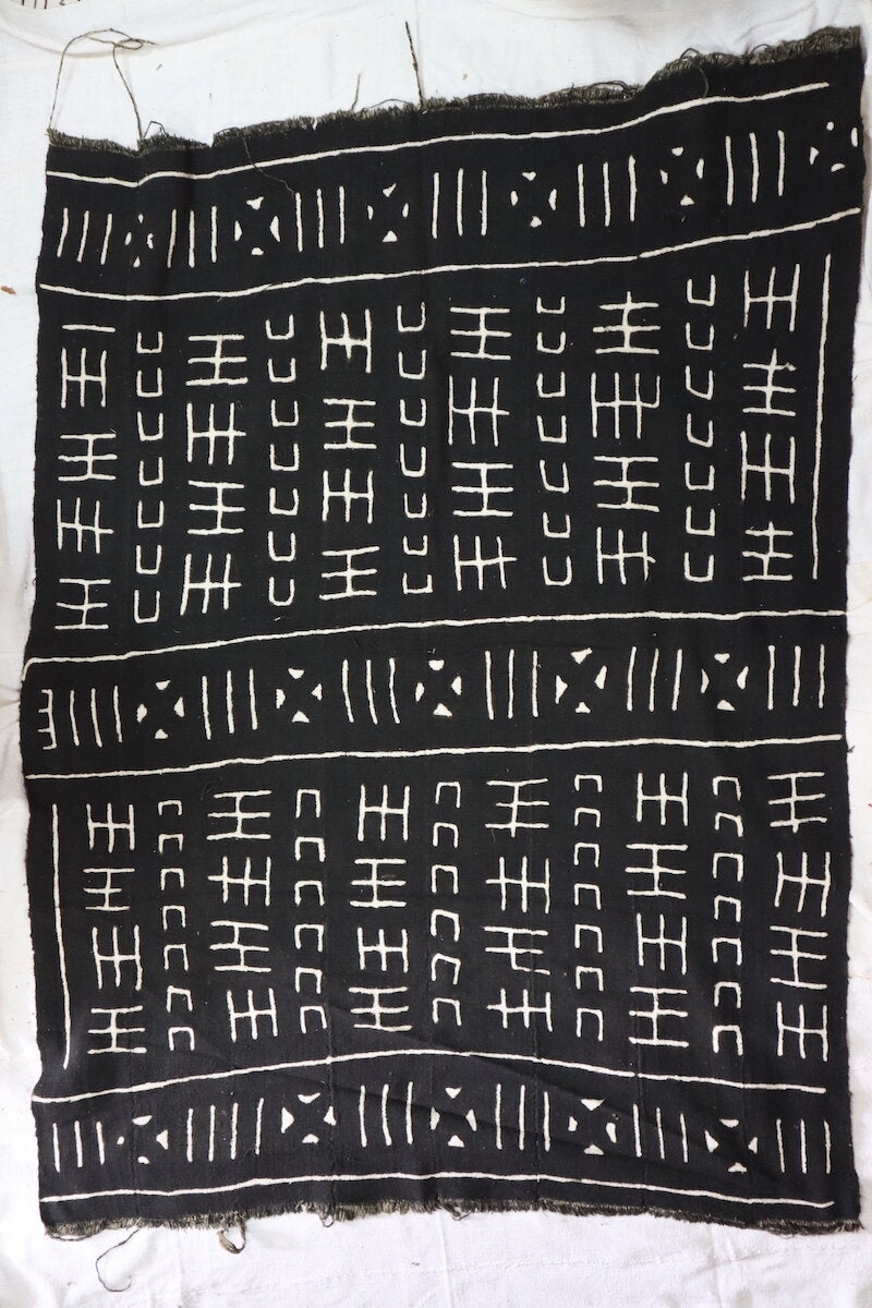 Handspun, handwoven, and hand-dyed with 100% organic cotton. Each Traditional Black Bogolan tells its own wonderfully magical story. These mud-cloths are handmade by our family in Mali and there are slight variations with the coloring and designs of each piece.