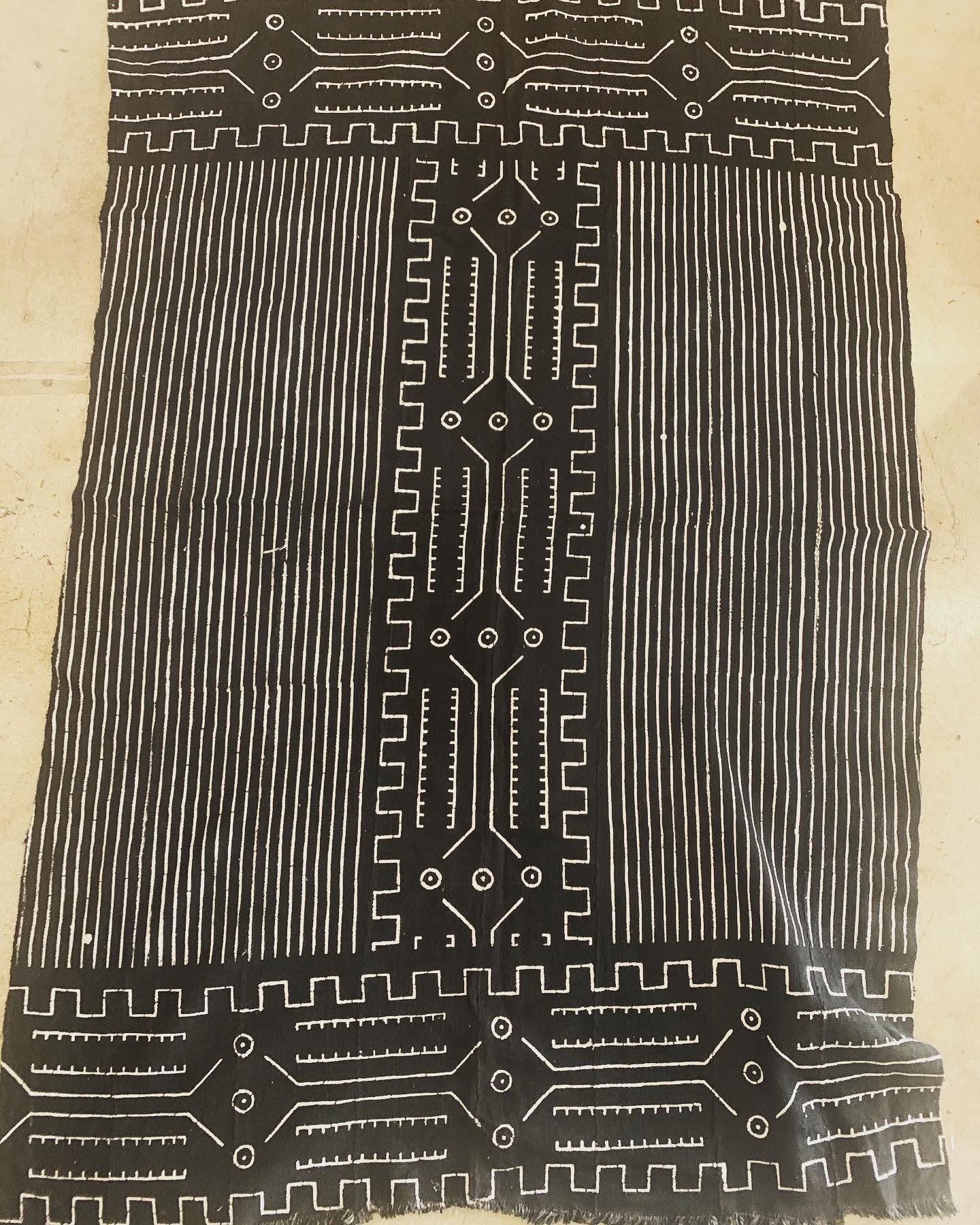 Handspun, handwoven, and hand-dyed with 100% organic cotton. Each Traditional Black Bogolan tells its own wonderfully magical story. These mud-cloths are handmade by our family in Mali and there are slight variations with the coloring and designs of each piece.