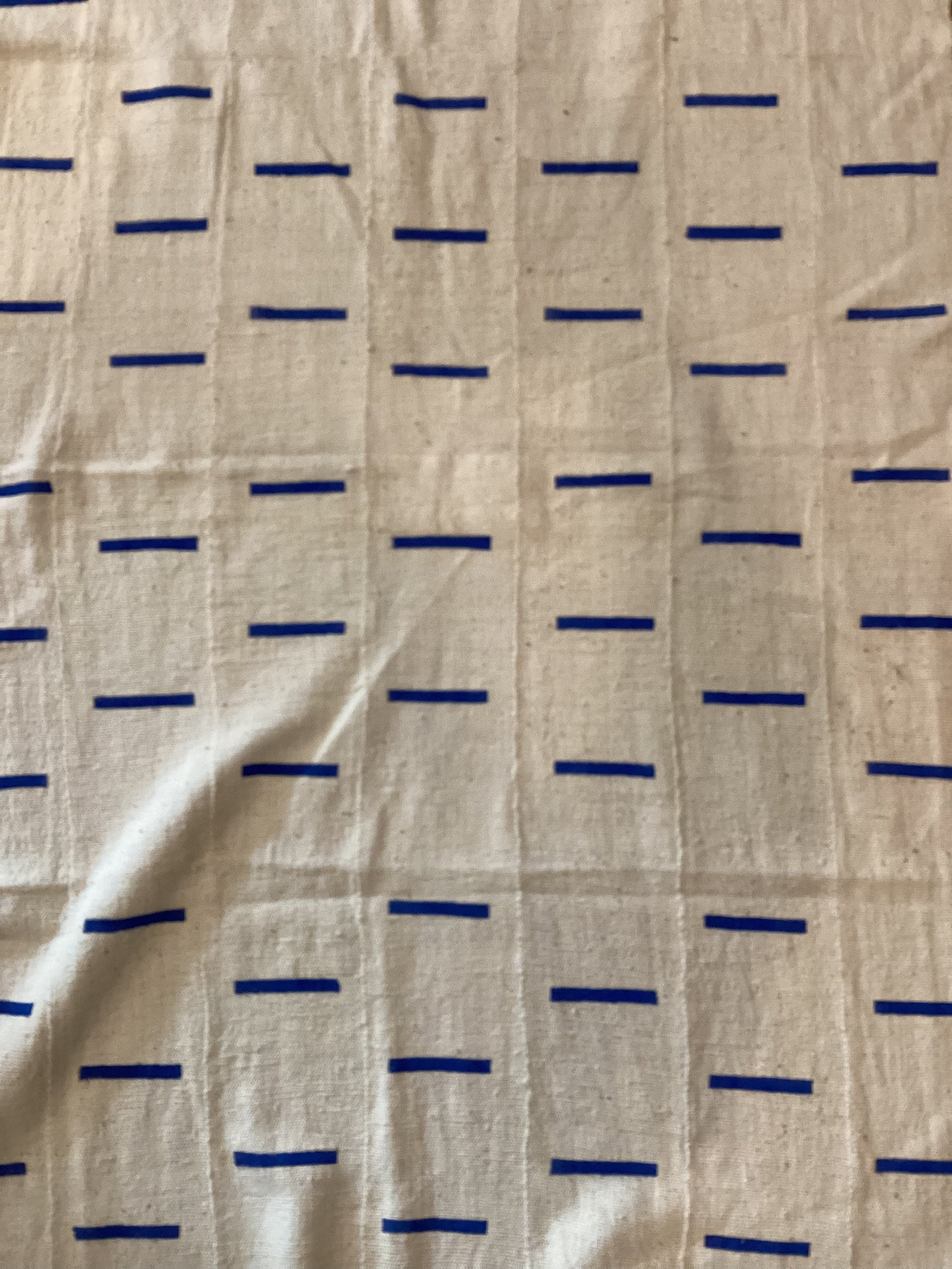 Care Instructions: Use chemical-free soap (We recommend Castile Soap) and cold water. Submerge your Mud Cloth, gently moving the Mud Cloth around, let sit for about 5 mins. Remove Mud cloth and GENTLY ring out excess water. Hang dry or lay flat. Iron on the back of the fabric, on (low) cotton setting, if needed. To help "set" color (more specifically for Indigo) and reduce fading/transferring, you can add a small amount of vinegar to the water while washing.